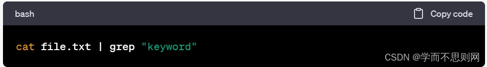 )将多个命令连接在一起,将一个命令的输出传递给另一个命令的输入。