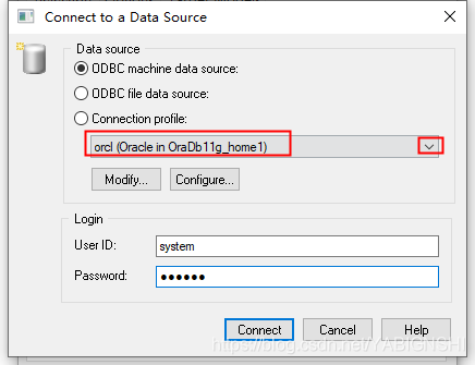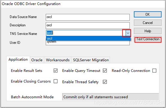 点击下拉按钮,会看到自己在tnsnames.ora里配置的TNS服务名: