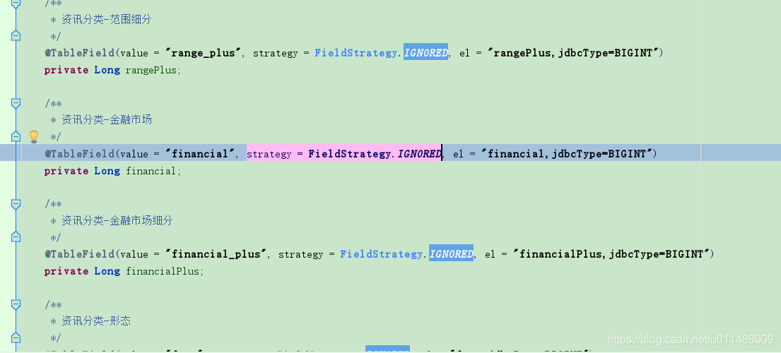 3、如果全部参数执行那么需要小心设置字段避免被全局更新;实体类的字段不允许有注释: