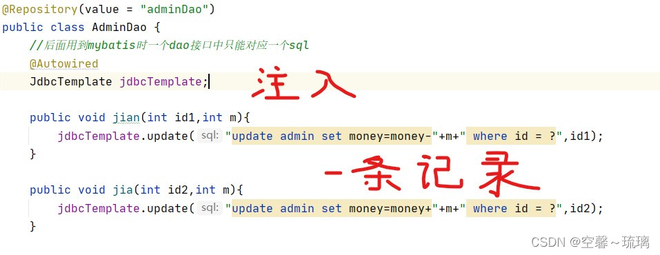 4.在 service 中注入 Dao 代理接口,此接口有 Spring 代理实现