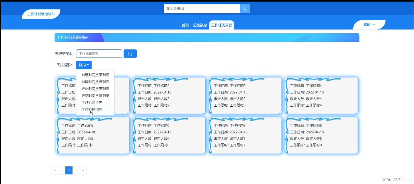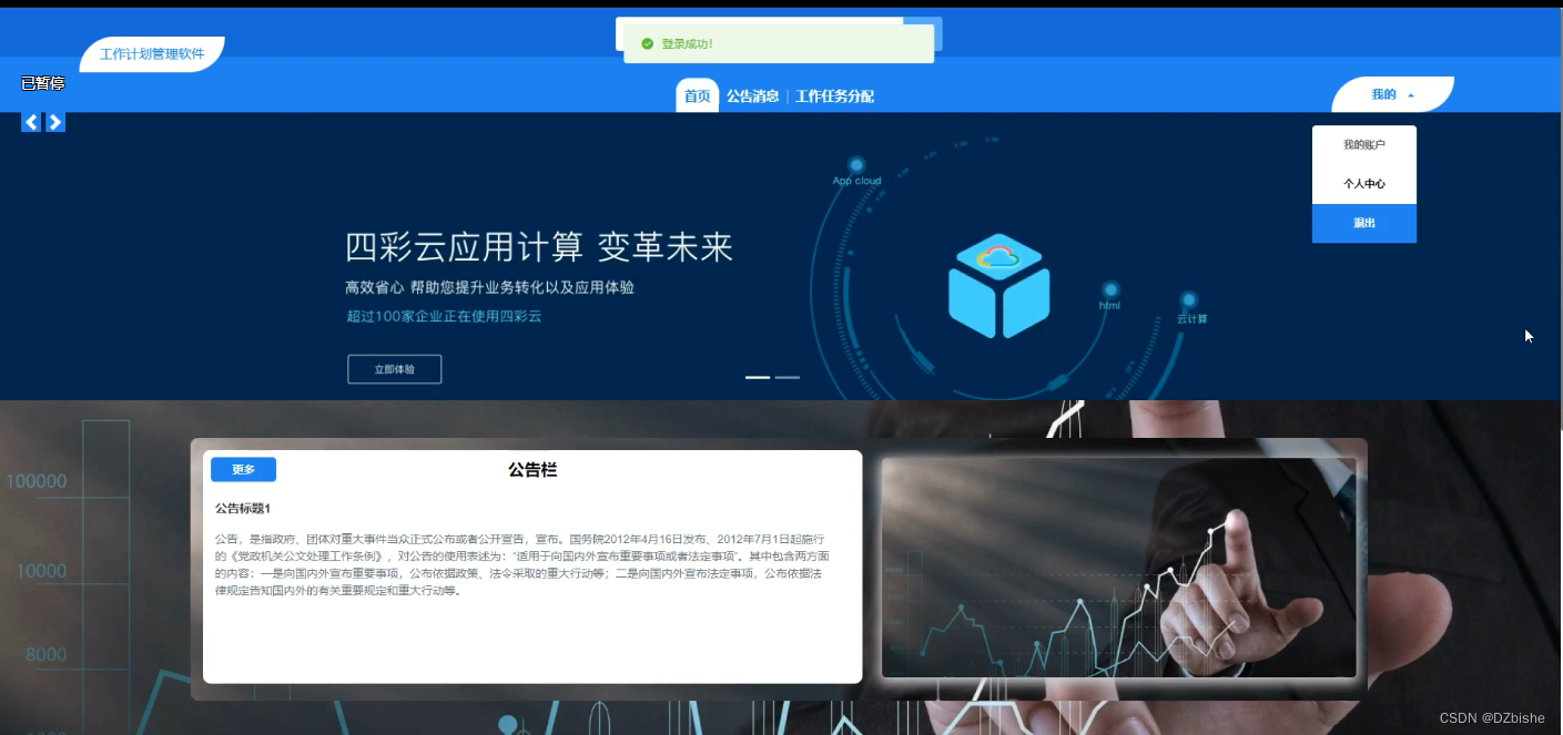 This design mainly realizes the work plan management software with the advantages of humanization, high efficiency and convenience, and completes the functional modules such as rotation chart, bulletin board, administrator, employee user, work task allocation, personal work task, personal workload and so on. The system communicates with the server through the browser to realize the interaction and change of data. You can operate the system and realize data communication management by moving your fingers through a computer. The safety, stability and reliability of data are fully considered in the design process of the whole system, and the operation process is simple. Through scientific management and convenient service, the system improves work efficiency and reduces errors and omissions in data storage.