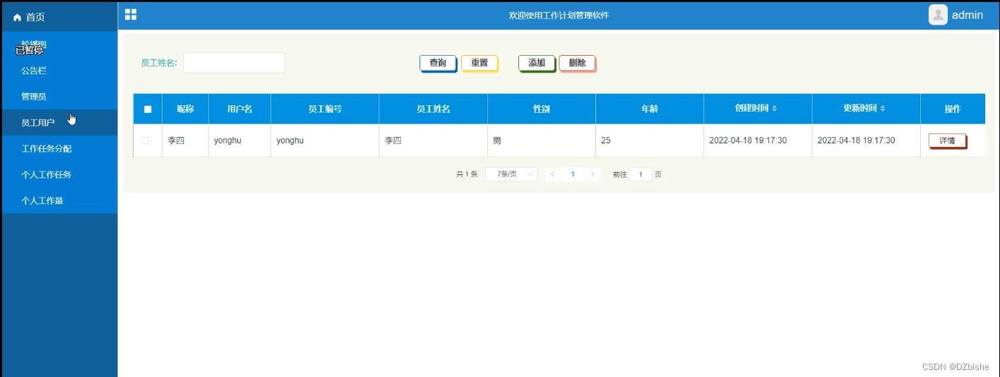 查看员工用户提交的个人工作量数据,管理员有权利维护它。