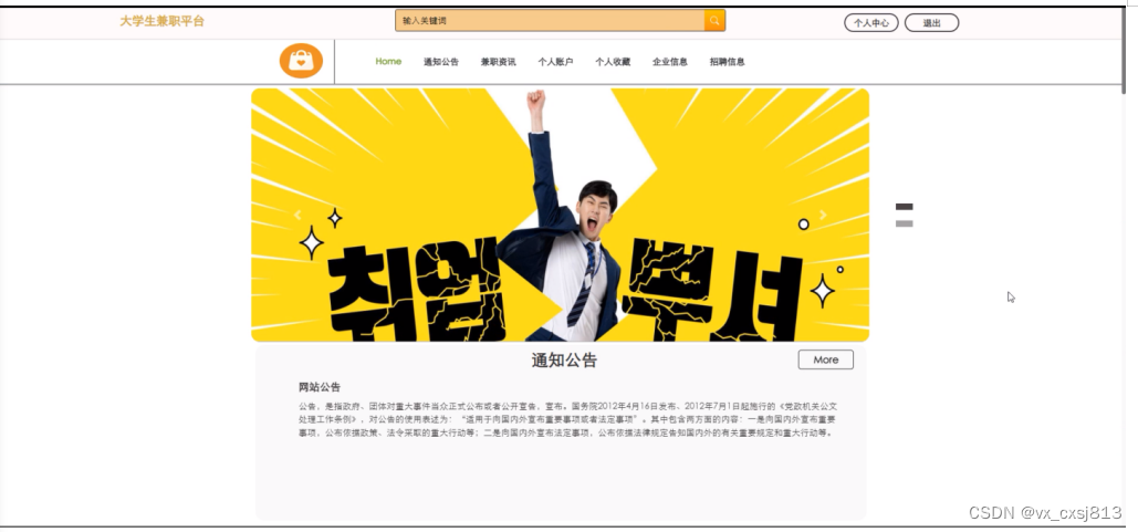 通过对功能的测试,大学生兼职平台的基本功能都是可行的,不管是系统里面的功能,还是界面的设计都是可值得推广宣传的。