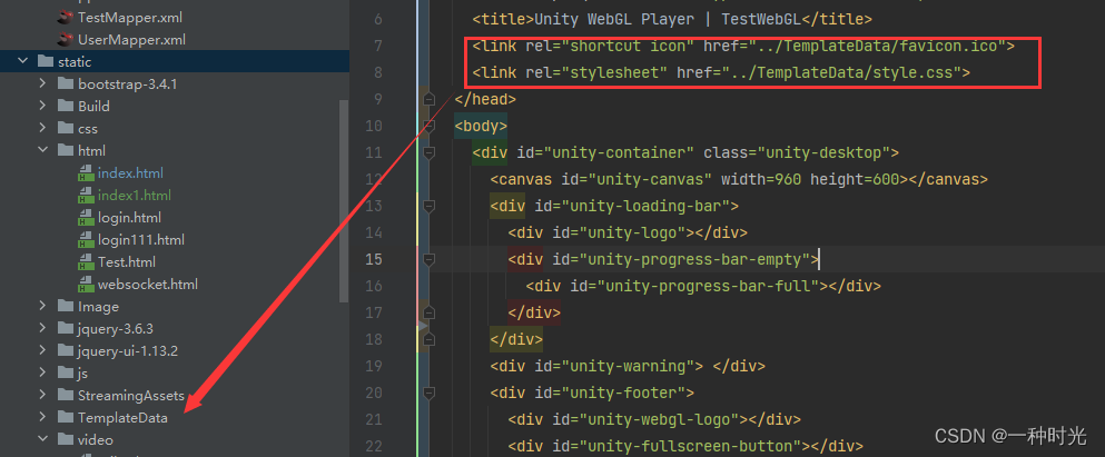 修改index.html 中 TemplateData的地址webGL生成的文件可以放在static 文件夹下 但不能放在html 文件夹下 会提示找不到文件即使路径对了也找不到。