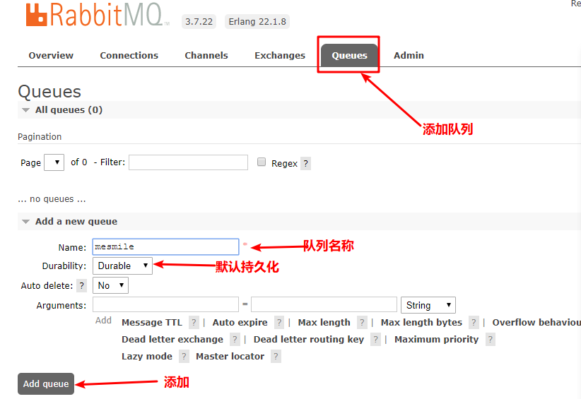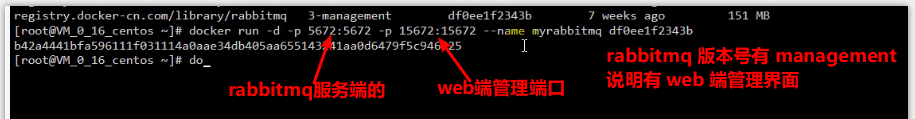 # docker run -di -p 5672:5672 -p 15672:15672 --name myrabbitmq rabbitmq:3.7-management