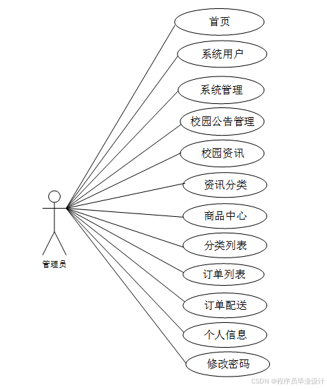 web后台管理上的管理员是维护整个校园二手书交易系统中所有数据信息的。管理员角色用例如图2-6所示。