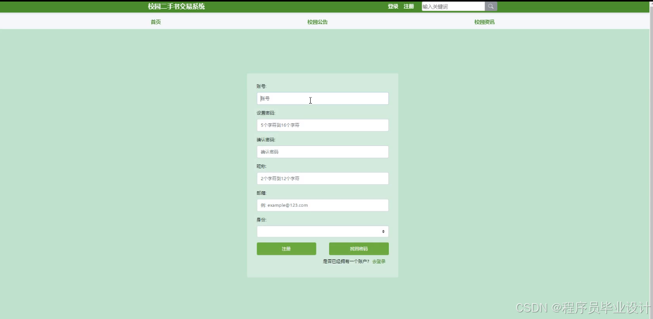 用户只要跟着校园二手书交易系统的页面展示内容进行操作,就可以了。 |