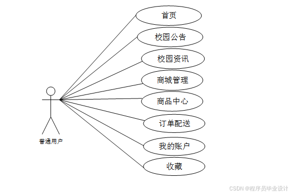 通过2.3功能的分析,得出了本校园二手书交易系统的用例图: