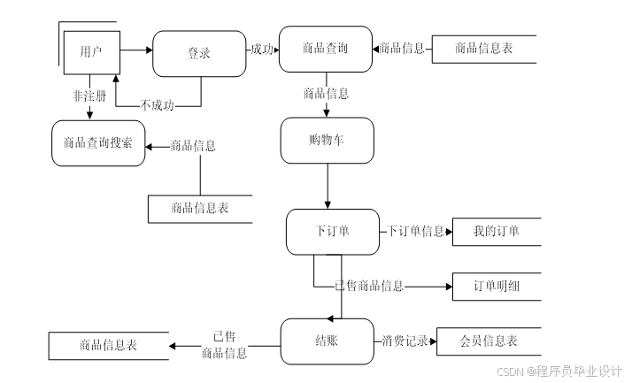校园二手书交易系统主要的目的就是实现对商品的在线选购,图2-1就是系统的数据流图。