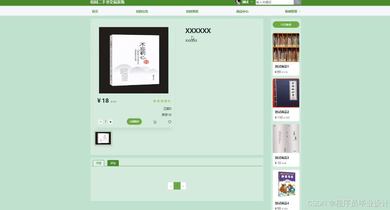 In today's digital age, the campus second-hand book trading system has gradually become a new favorite of college students due to its convenient, environmentally friendly, and cost-effective characteristics. The Spring Boot campus second-hand book trading system is an innovative project born based on this demand background. The system aims to provide a fast channel for students to buy and sell second-hand books by building an efficient and secure online trading platform. It not only facilitates the learning and life of students, but also helps to reduce resource waste and promote the popularization of green lifestyles on campus. With the powerful features of the Spring Boot framework, the system will achieve a series of functions such as user registration and login, book information publishing, browsing and searching, online trading, etc., injecting new vitality into the campus second-hand book market.