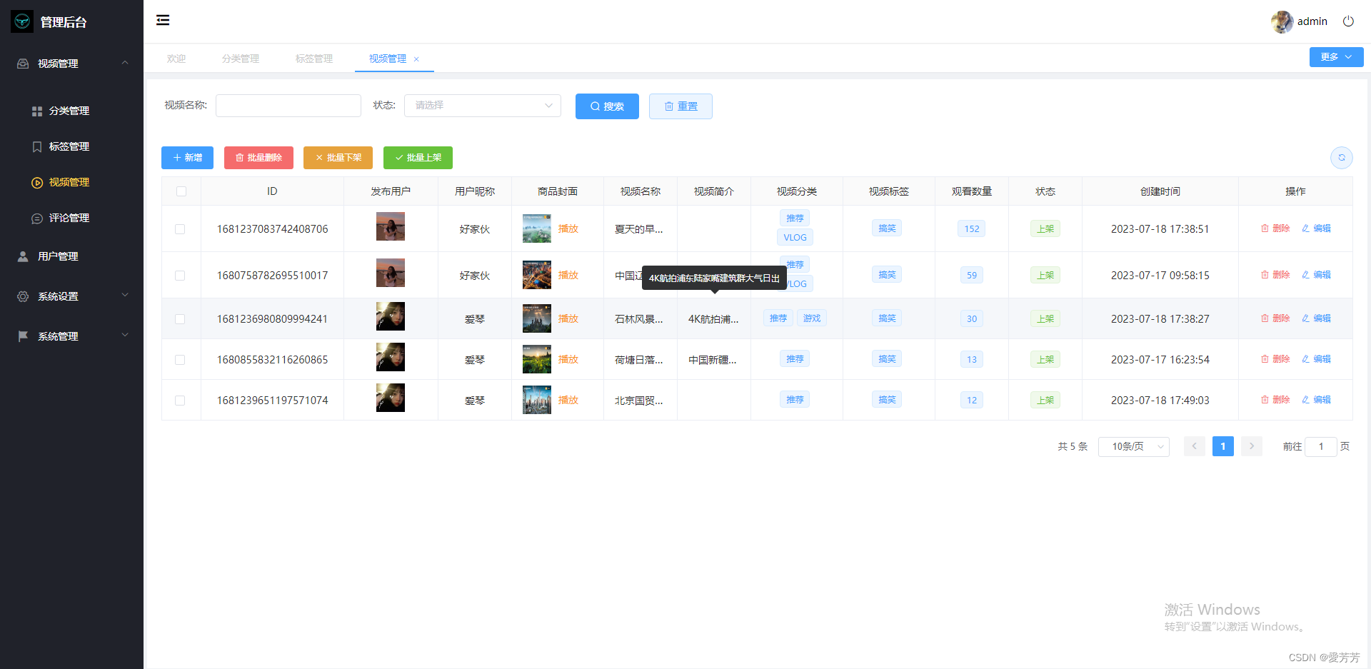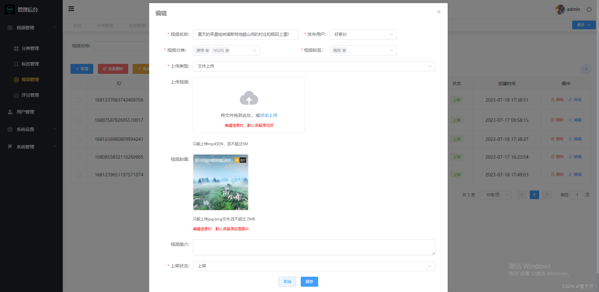 springboot+mybatis-plus+vue+element+vant2实现短视频网站,模拟西瓜视频移动端