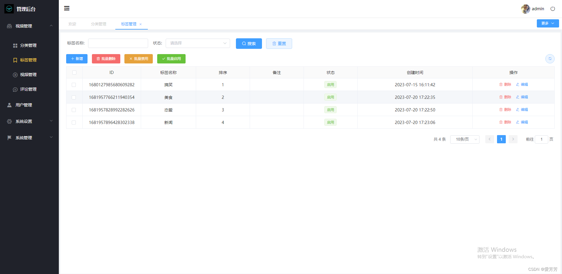 ) ENGINE=InnoDB DEFAULT CHARSET=utf8mb4 COMMENT='视频标签';