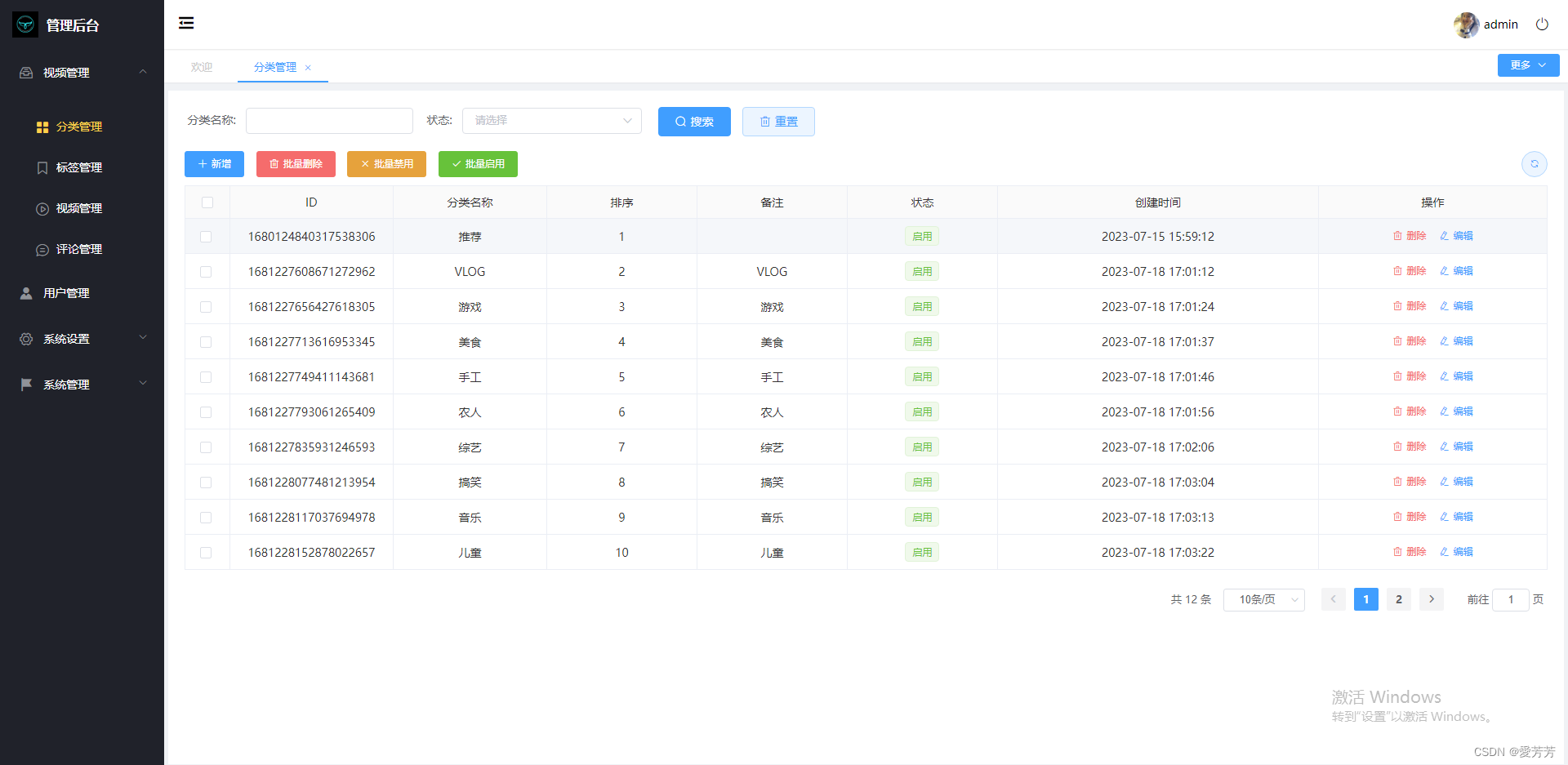 ) ENGINE=InnoDB DEFAULT CHARSET=utf8mb4 COMMENT='视频分类';