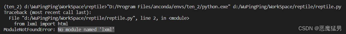 同样是爬虫,前一个bs4问题解决后,又遇到了另一个问题,No module named 'lxml':