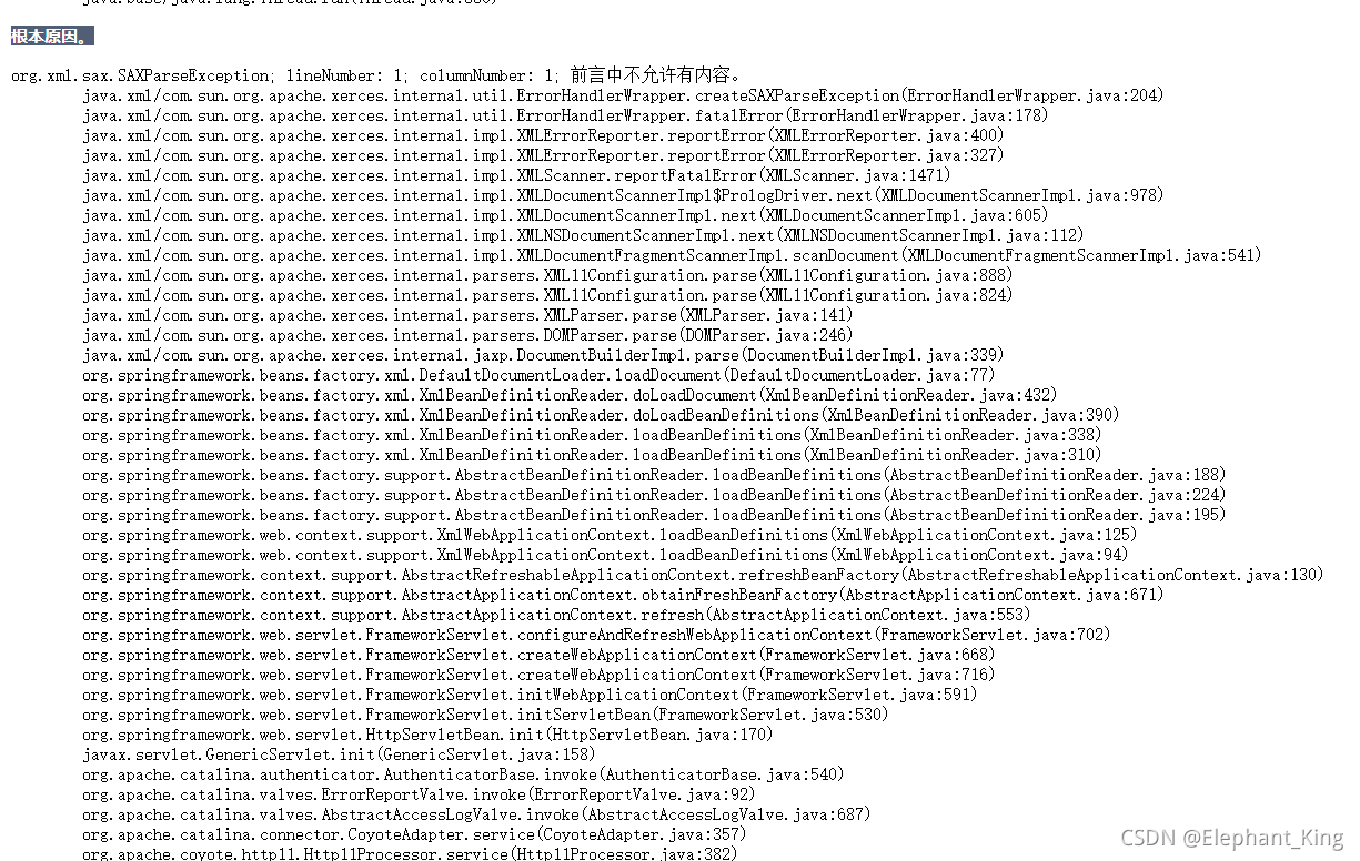 【报错】org.xml.sax.SAXParseException; lineNumber: 1; columnNumber: 1; 前言中不允许有内容