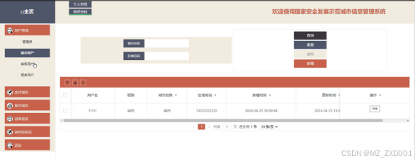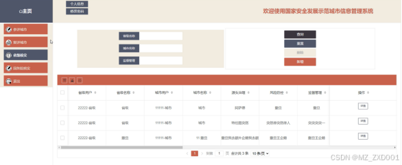 Keywords: National Security Development Model City Information Management System; Springboot; database