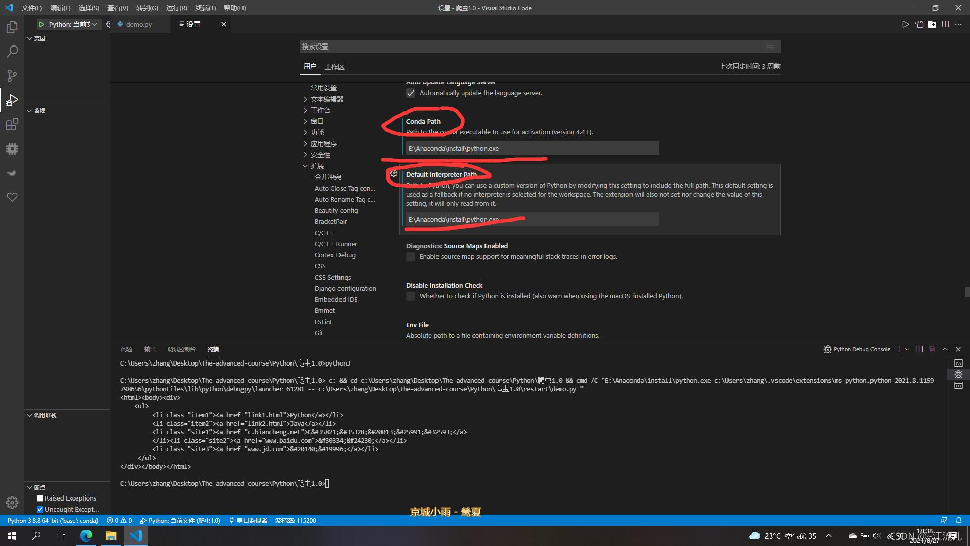 在学习爬虫的时候,使用vscode编辑python,通过pip3 install lxml 安装lxml模块,编译时发现can not find etree,尝试网上各种方法,未能解决,因本人装了许多乱七八糟的东西,所以电脑上有好几个版本的python,我怀疑是否时版本问题,但是下载了对应python版本的lxml后,错误依旧没有解决,最后在vscode设置的扩展里的python部分发现我的python默认启动路径是另一个版本的,而这个版本没有对应的lxml,然后我更改了默认python路径,错误解决,巴适~