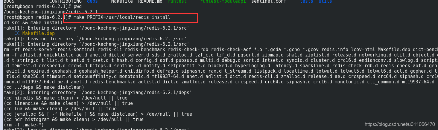 [root@bogon redis-6.2.1]# make PREFIX=/usr/local/redis install
