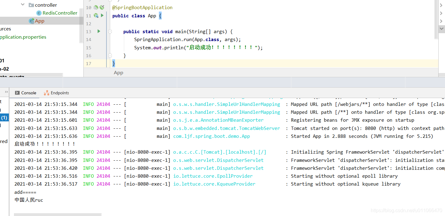 this.redisTemplate.opsForValue().set("key", "中国人民ruc");