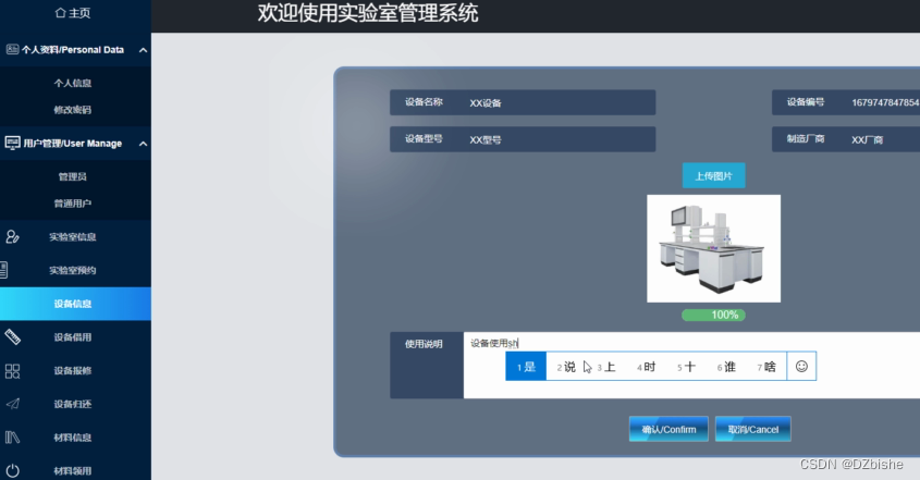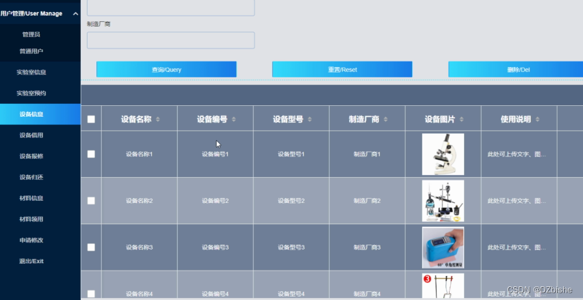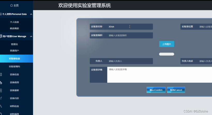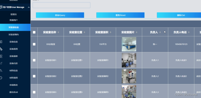 实验室信息管理界面如下图所示。