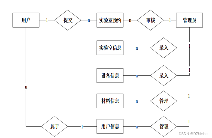 系统设计的目的是分析系统包括的所有功能结构,为开发人员设计开发和实现系统做好准备工作。经过前期的需求调查、分析和整理之后,确定的总体需求主要包括多个模块,分别是:实验室信息管理、实验室预约管理、设备信息管理、设备借用管理、设备归还管理、材料信息管理)。系统整体角色分为二个部分,一是用户、二是管理员。权限分布也是很明显,用户是在除去浏览信息之外还具有查询和管理自己账户信息、实验室信息、设备信息、设备借用、设备归还、材料信息、材料领用等权限;管理员是最高权限拥有者。