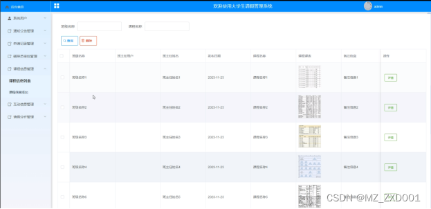 (3)课程信息管理:点击“课程信息管理”按钮会显示出课程的所有的信息,支持对课程信息的增删改查操作。