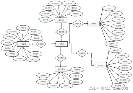 下面是整个大学生请假管理系统中主要的数据库表总E-R实体关系图。