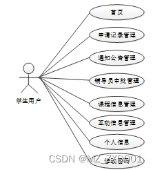根据上一节功能分析,可以得出系统的用例,学生用户角色用例如图2.1所示。