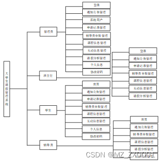 通过了解对大学生请假管理系统的真实需求后,将大学生请假管理系统所需要的角色划分整理成了下图图2-2和图2-3。