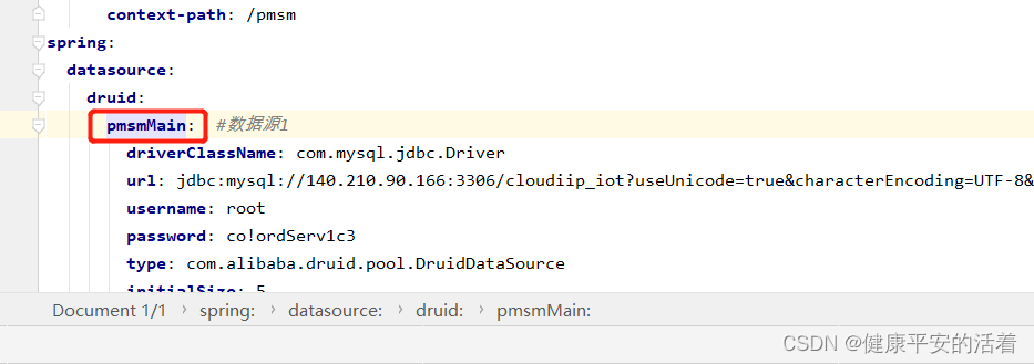 2.在@ConfigurationProperties("spring.datasource.druid.pmsmMain") 修改为: