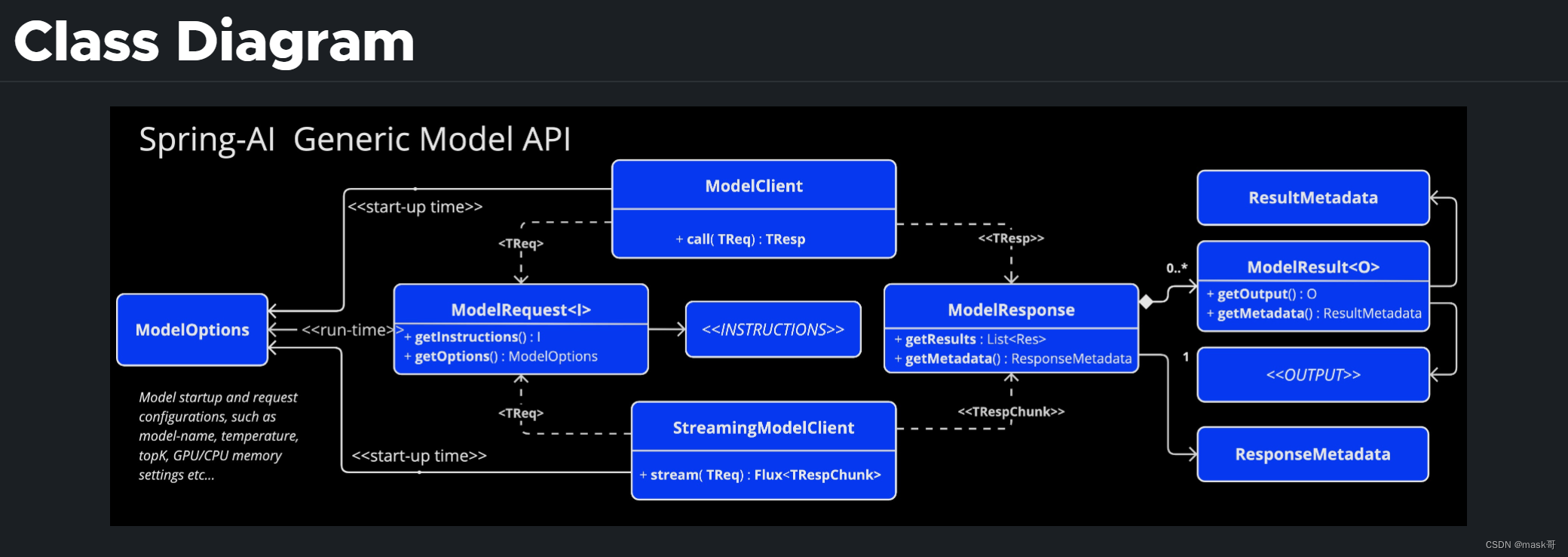 为了给所有 AI 模型客户端提供基础,创建了通用模型 API。 这使得通过遵循通用模式可以轻松地为 Spring AI 提供新的 AI 模型支持。 以下部分为此 API介绍: