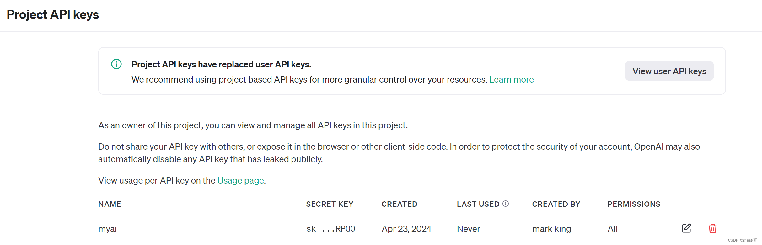 step3.创建openAI账户,获取api key并配置其于项目工程