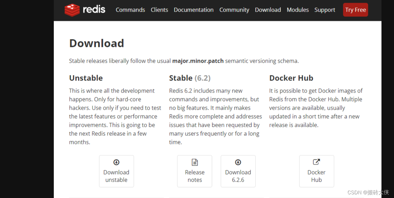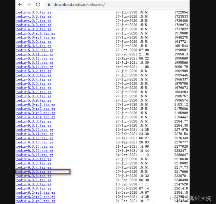 如果不想下载最新稳定版本而是想要下载指定的版本 (https://download.redis.io/releases/)