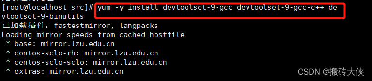 yum -y install devtoolset-9-gcc devtoolset-9-gcc-c++ devtoolset-9-binutils