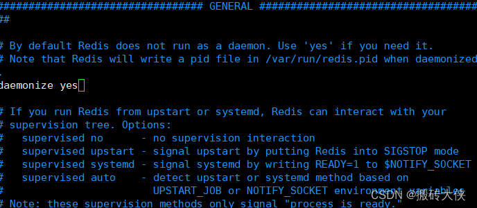 把文件中的daemonize属性no改为yes(表明需要在后台运行)