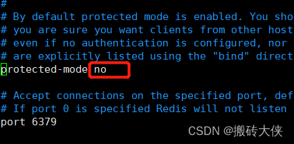 protected-mode | yes 、no | 保护模式,该模式控制外部网是否可以连接redis服务,默认是yes,所以默认我们外网是无法访问的,如需外网连接rendis服务则需要将此属性改为no。 |