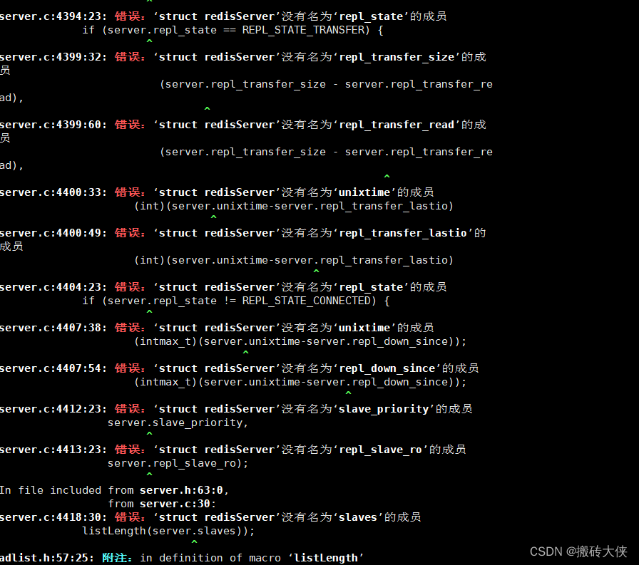 安装 redis执行make命令报错struct redisServer’没有名为‘sentinel_mode’的成员