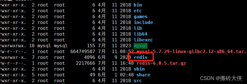 解压后当前的目录出现一个redis-6.0.5的目录,就是我们刚刚解压的目录