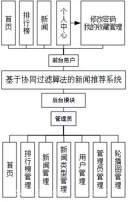 为了更好地发挥本系统的技术优势,根据新闻推荐系统的需求,本文尝试以B/S经典设计模式中的Spring Boot框架,JAVA语言为基础,通过必要的编码处理、新闻推荐系统整体框架、功能服务多样化和有效性的高级经验和技术实现方法,旨在完成一个快速、高效、便捷的新闻推荐系统。本系统以用户与管理员两类人,作为目标用户,其中用户主要功能包含用户的注册与登录,查看排行榜、新闻进行收藏等,对账号相关信息的修改;管理员主要功能包括了对用户信息、排行榜、新闻、新闻类型等管理;管理员可以实现最高权限级别的全系统管理,