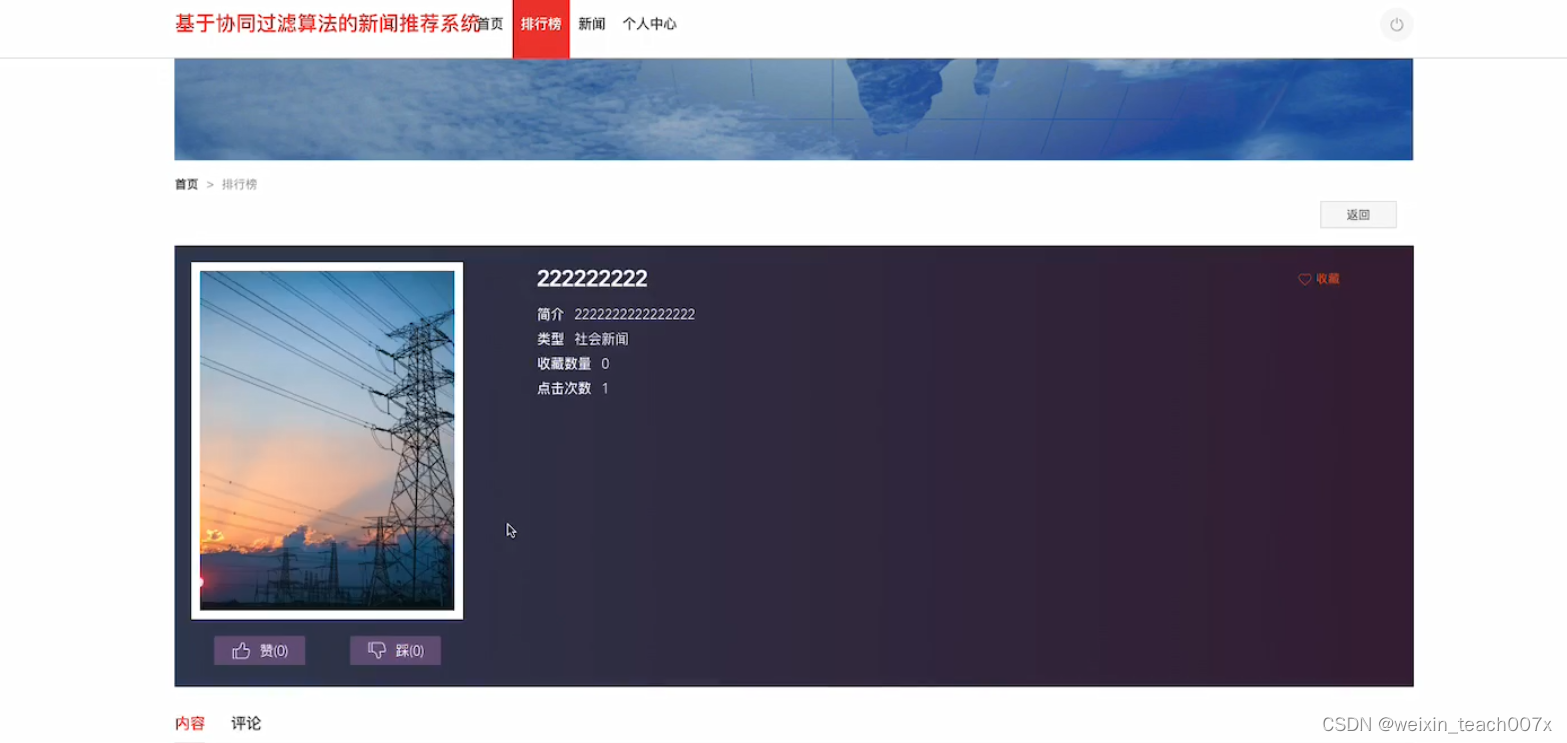 用户点击排行榜,在排行榜页面的搜索栏输入标题等信息,进行查询,可以查看标题、类型、图片、视频、赞、收藏数量、点击次数等信息,还可以进行收藏、评论或者点赞等操作;如图5-4所示。
