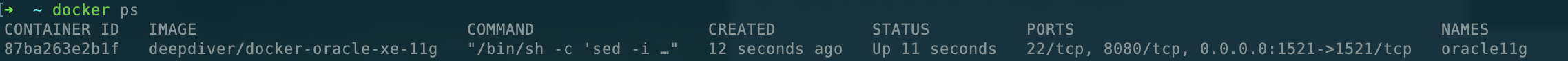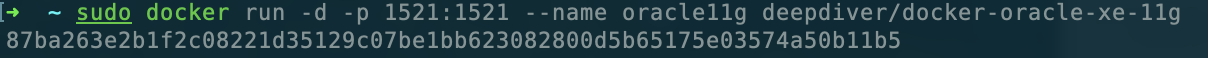 sudo docker run -d -p 1521:1521 --name oracle11g deepdiver/docker-oracle-xe-11g