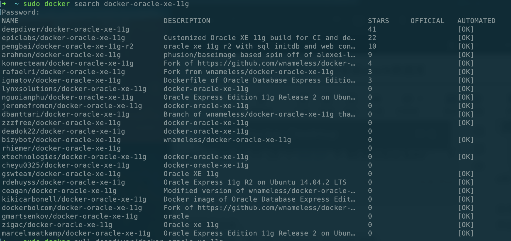 sudo docker search docker-oracle-xe-11g