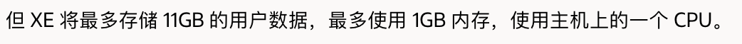 之所以选择xe(精简版)的原因是xe版本的镜像体积小,而且相较于正式版来说仅仅有了以下几个限制