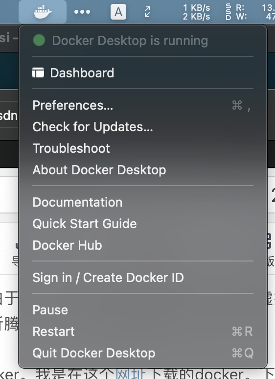 首先在mac上安装docker。我是在这个网址下载的docker。下载完成后无脑点击下一步安装即可。