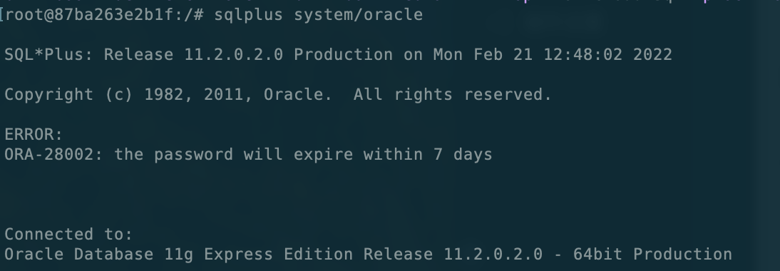 sqlplus system/oracle