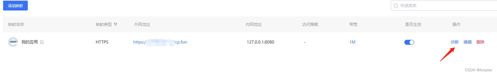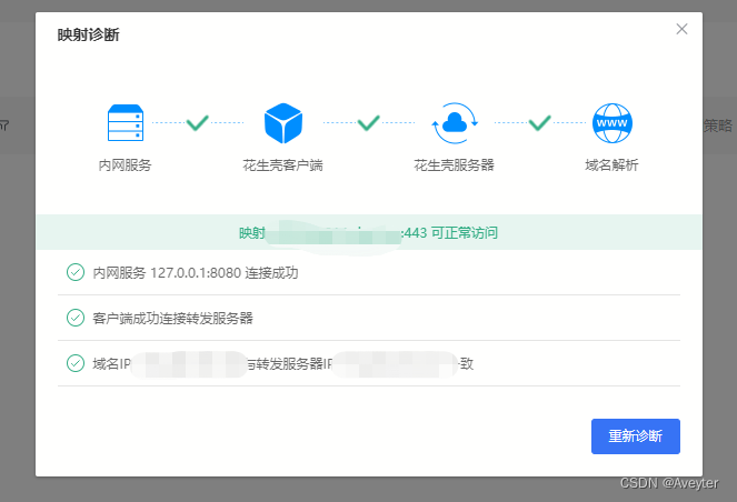 构建完成后,点击诊断,来判断是否内网穿透成功