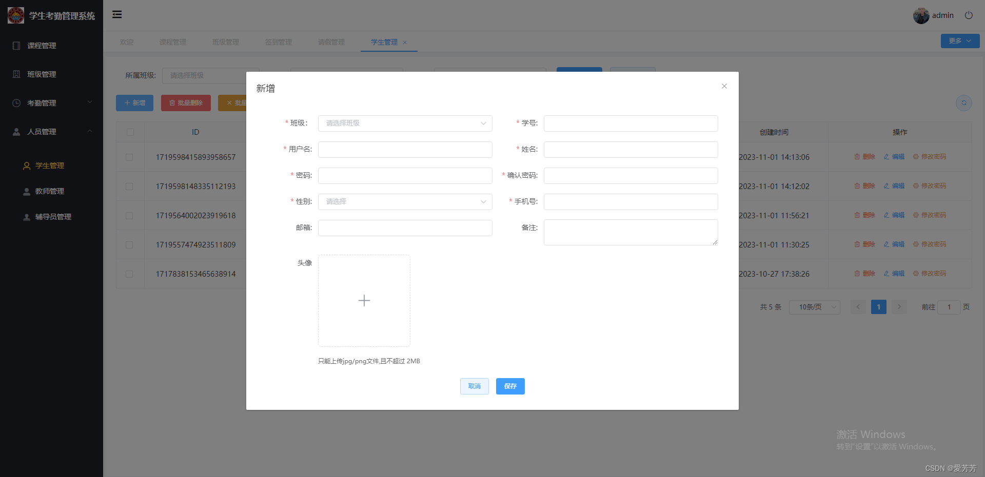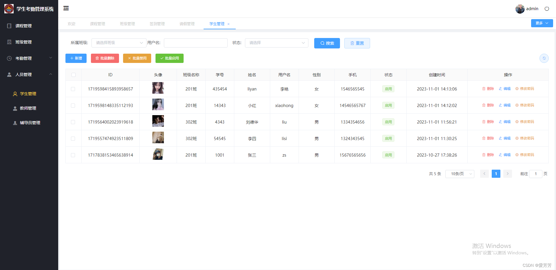 辅导员拥有全部权限,教师只能对自己所授课班级进行学生管理,学生只能对自己的记录进行管理。