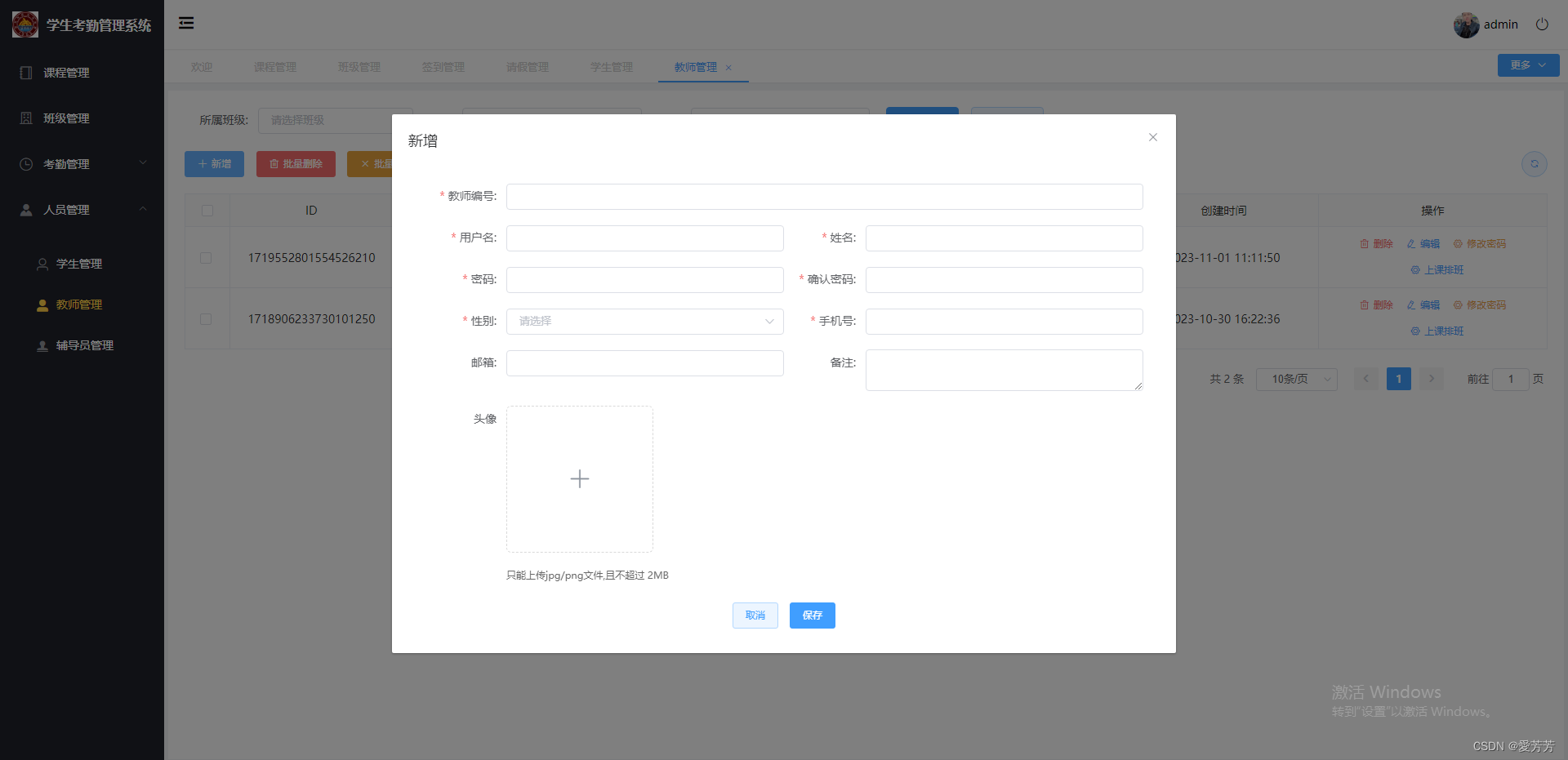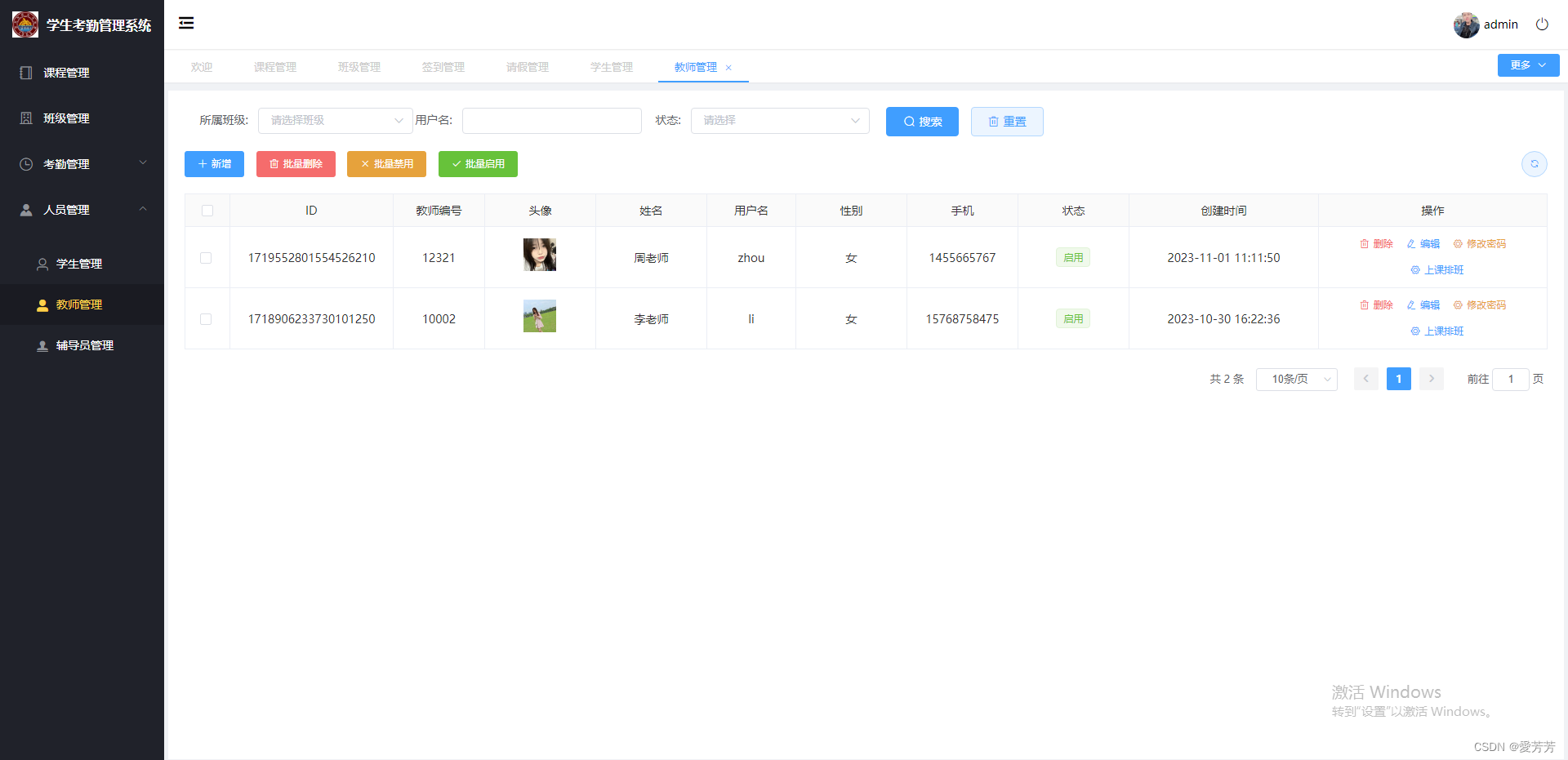 辅导员拥有全部权限,教师只能对自己的记录进行管理,学生只能查看本班级对应的授课老师记录。