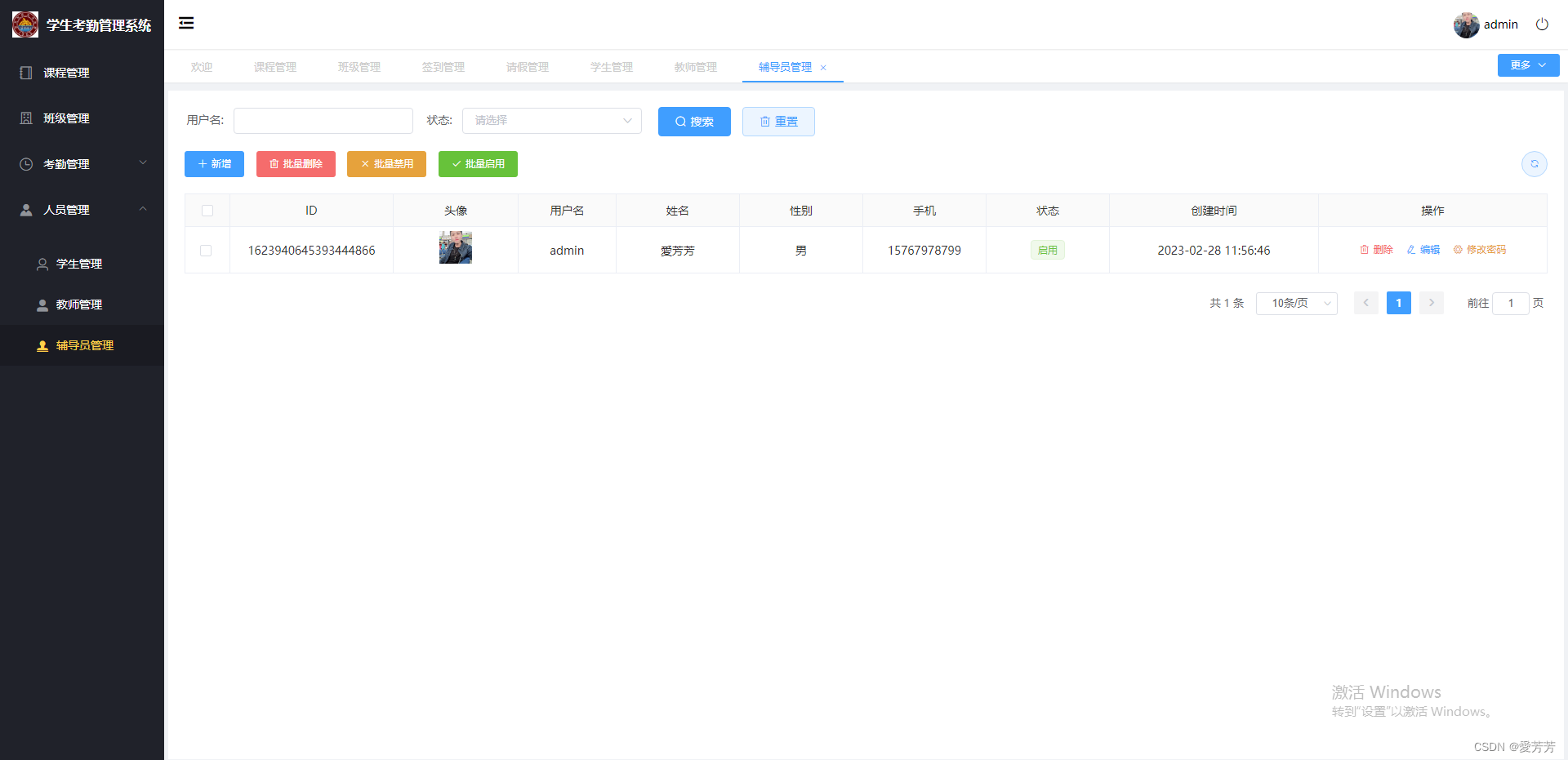 辅导员拥有全部权限,辅导员类似于超级管理员,教师和学生都只拥有查看权限。