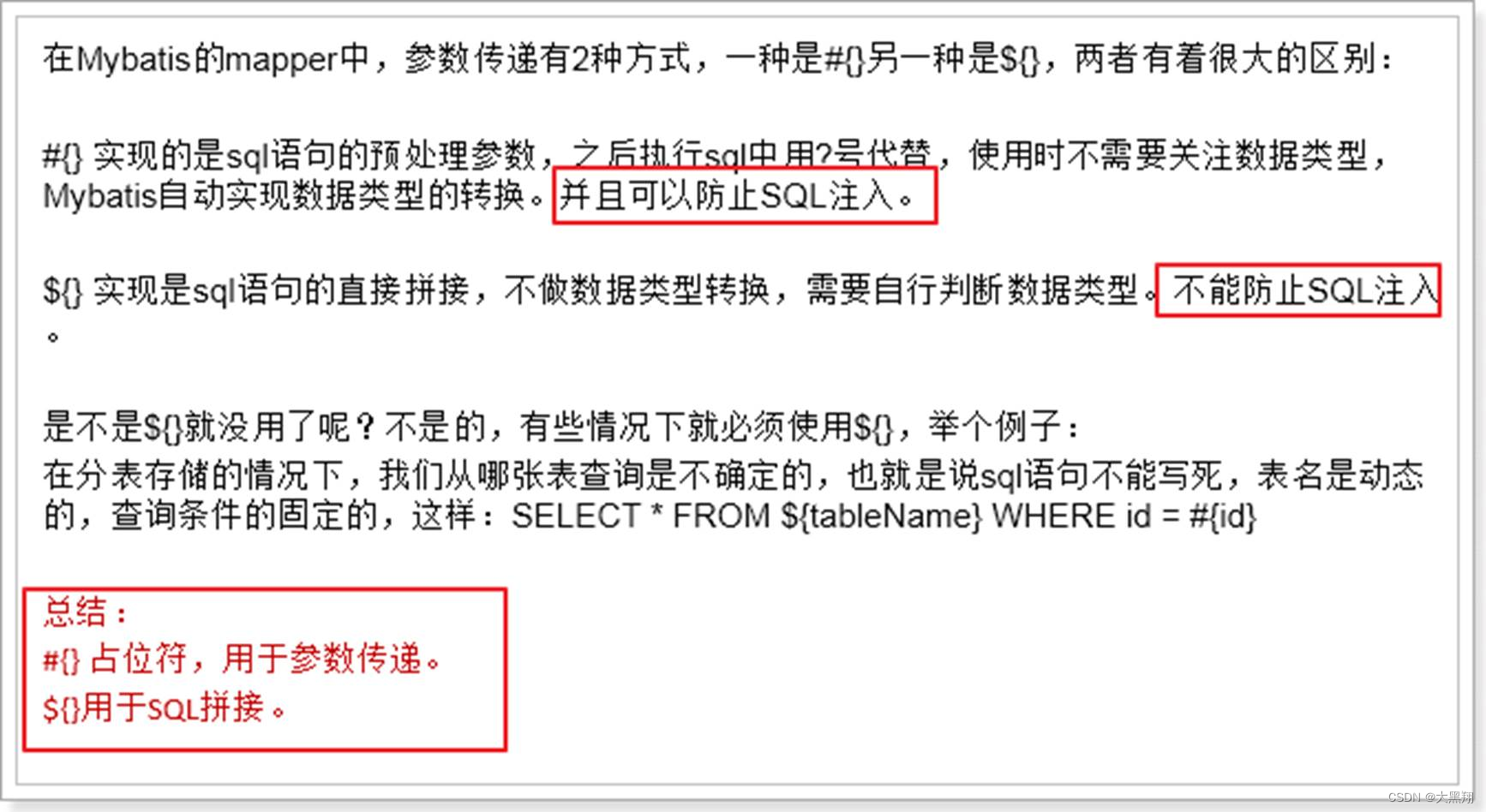 - ${} 作用:sql语句的拼接,需要判断参数类型,做具体的处理